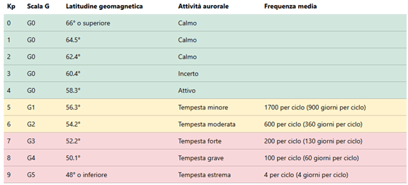 “La scala Kp misura l’intensità delle tempeste geomagnetiche su una scala da 0 a 9.”